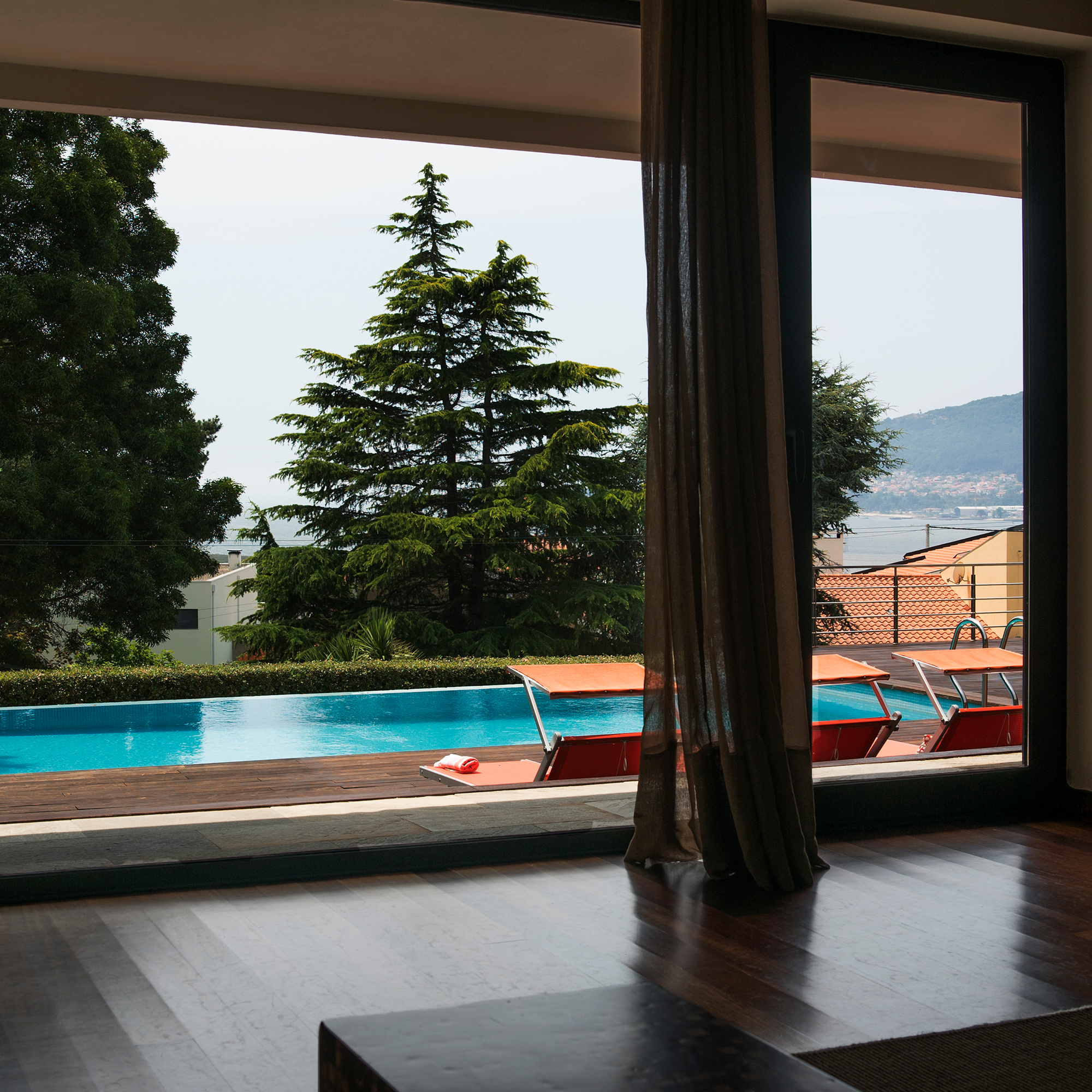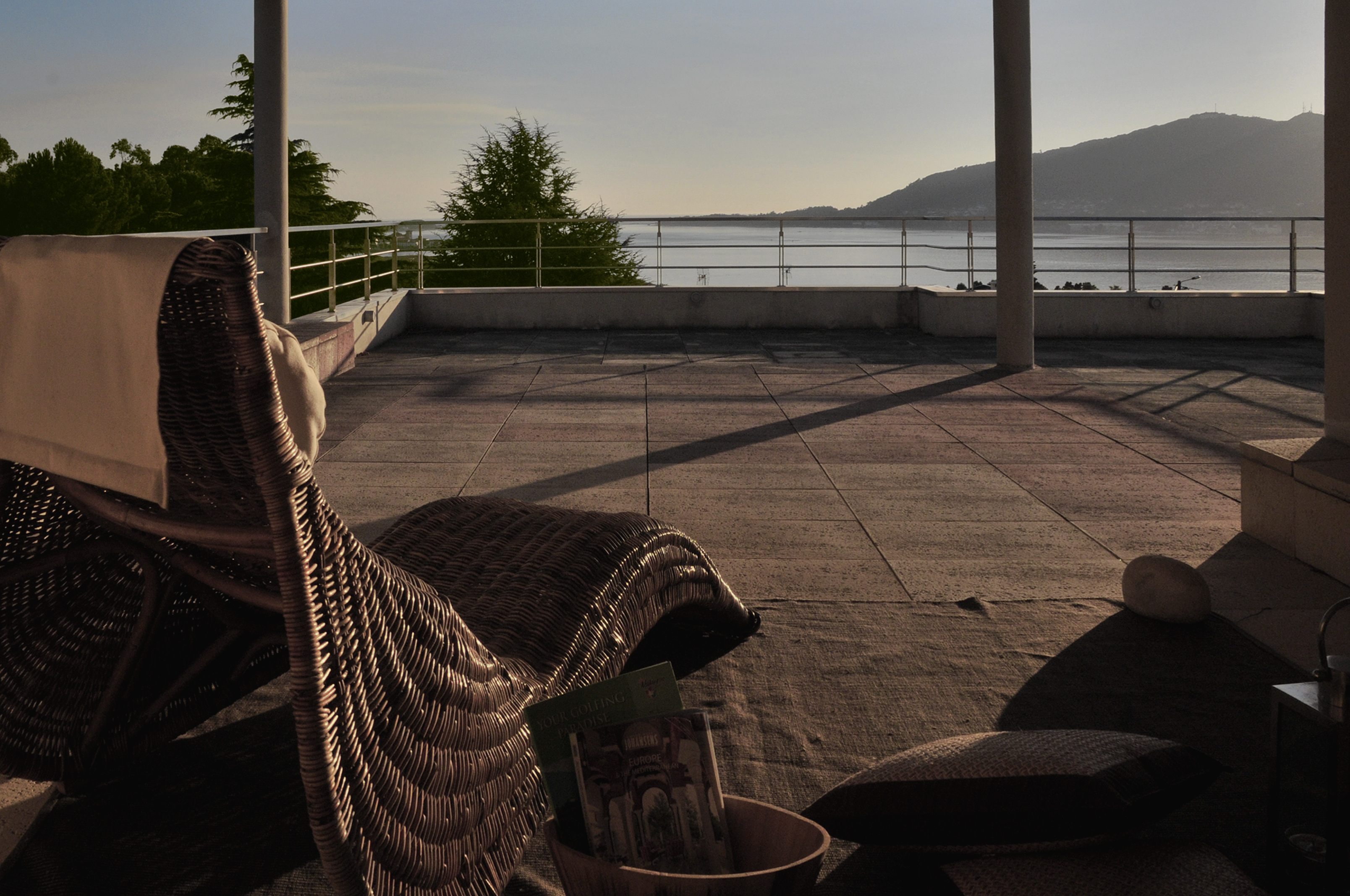 Terraço em que o mar, o rio e o Monte de Santa Tecla combinam na perfeição. Cenário ideal para ler e/ou relaxar.